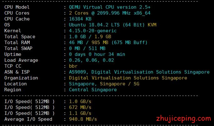 在测试了digital-vm的日本机房的10Gbps带宽的VPS之后(digital-vm:告诉你效果如何,日本10Gbps带宽不限流量VPS测评,有惊喜)肯定不能不测试一下仅有的2个亚洲机房的另外一个-新加坡!这里用1G内存、2核的VPS进行一些简单的数据测评,希望对你有帮助!