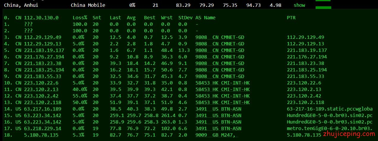 安徽移动,通过PCCW走香港绕美国回新加坡: