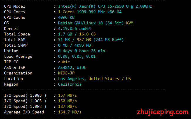 CPU为E5-2650一代、IP非原生、I/O大概160MB/s左右: