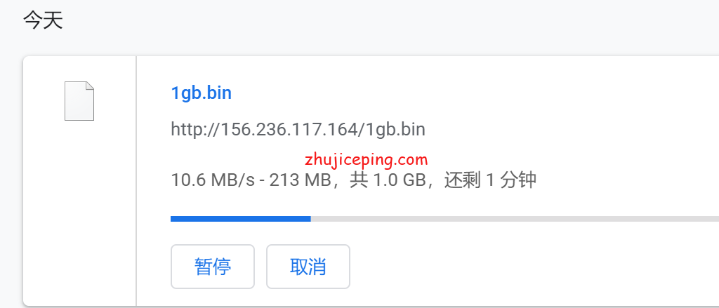 VPS上的测试文件,广州电信本地Chrome浏览器下载速度跑满,效果如下: