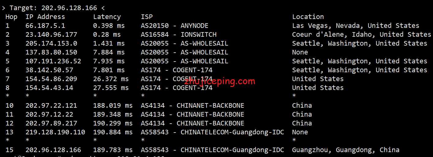 回程,到国内联通:与电信一样,也是cogentco,然后AS4837回来