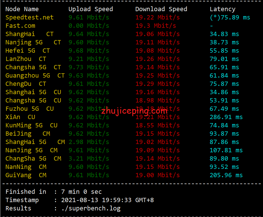 官方标注的是10Mbps带宽,我们用speedtest国内节点测试云服务器的上行和下行带宽,大致如下: