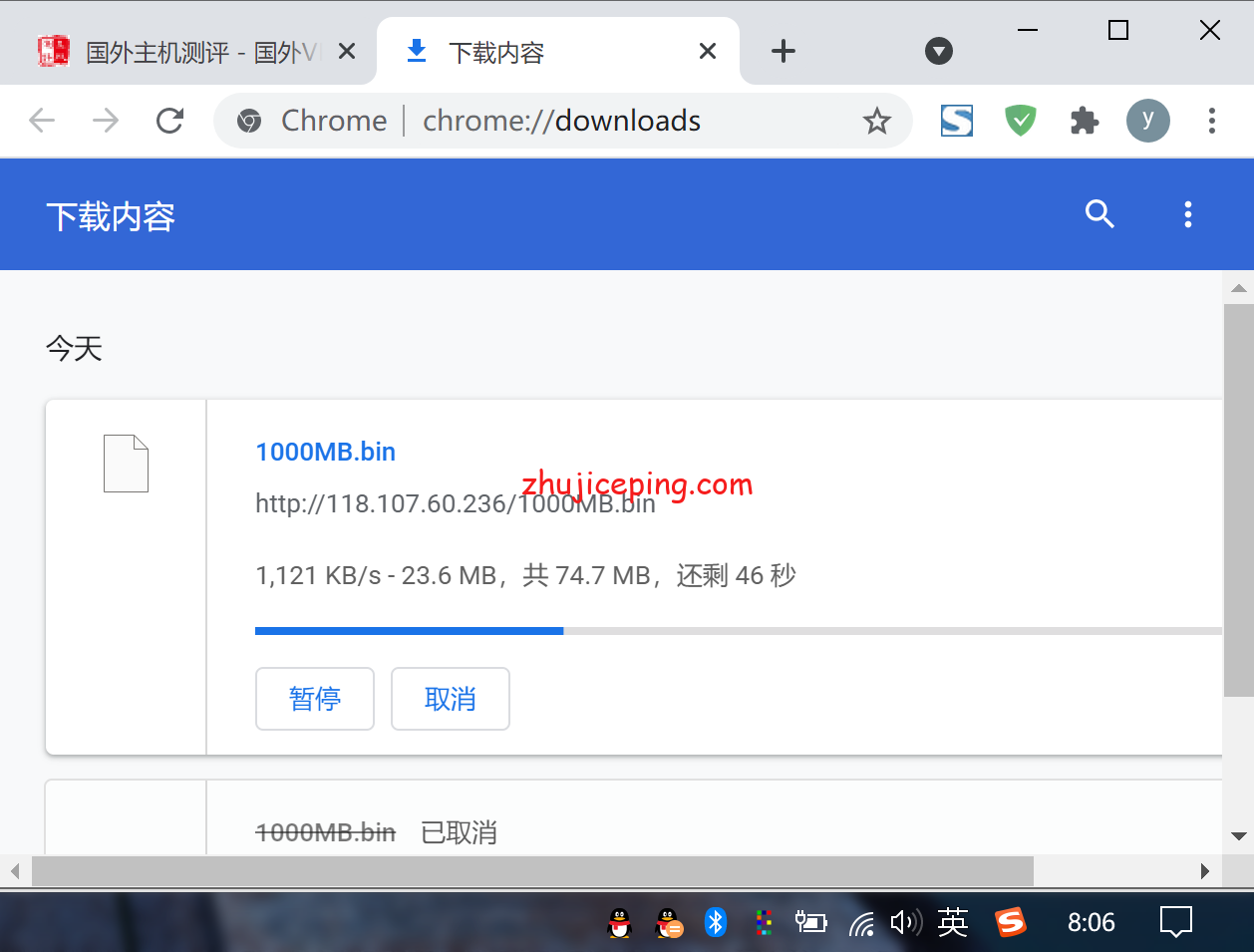 站长是广州电信,Chrome浏览器直接下载云服务器上的文件,速度如下: