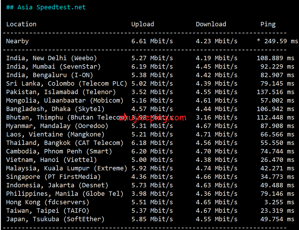 香港VPS在大陆能跑多少带宽,用speedtest.net的国内三网节点试试看,主要看下上下行带宽的数字就可以了,官方写的是5Mbps: