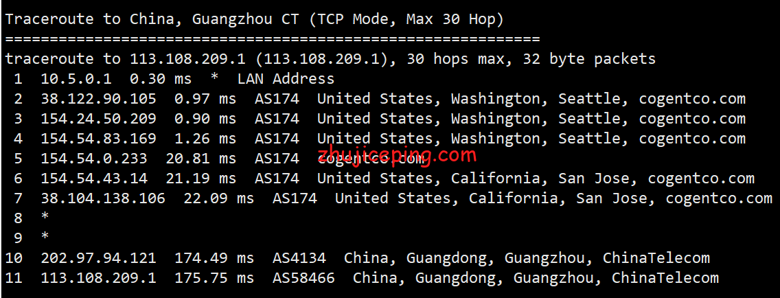 回程,到国内电信:西海岸圣何塞cogentco对接中国电信骨干