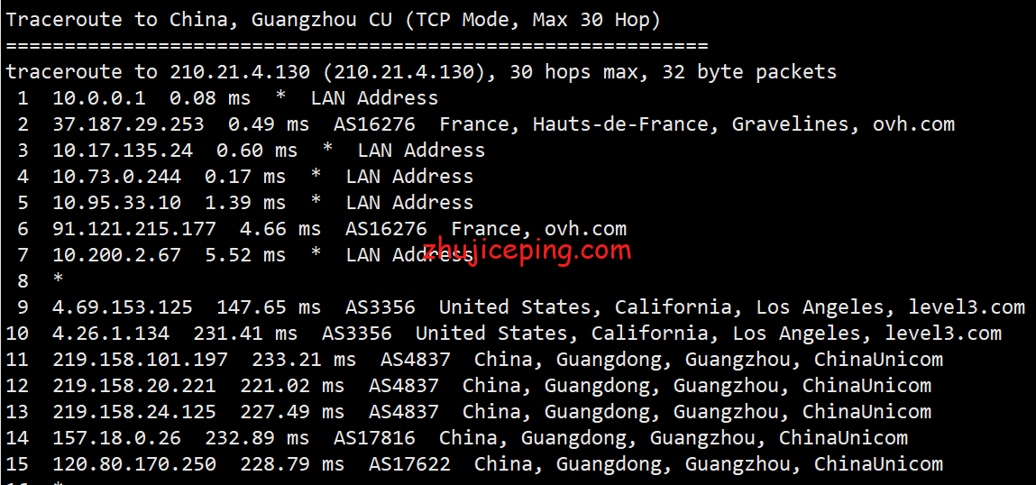 广州方向:法国到美国洛杉矶走level3后走as4837回来