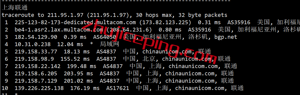 联通去程,与电信也是一样: