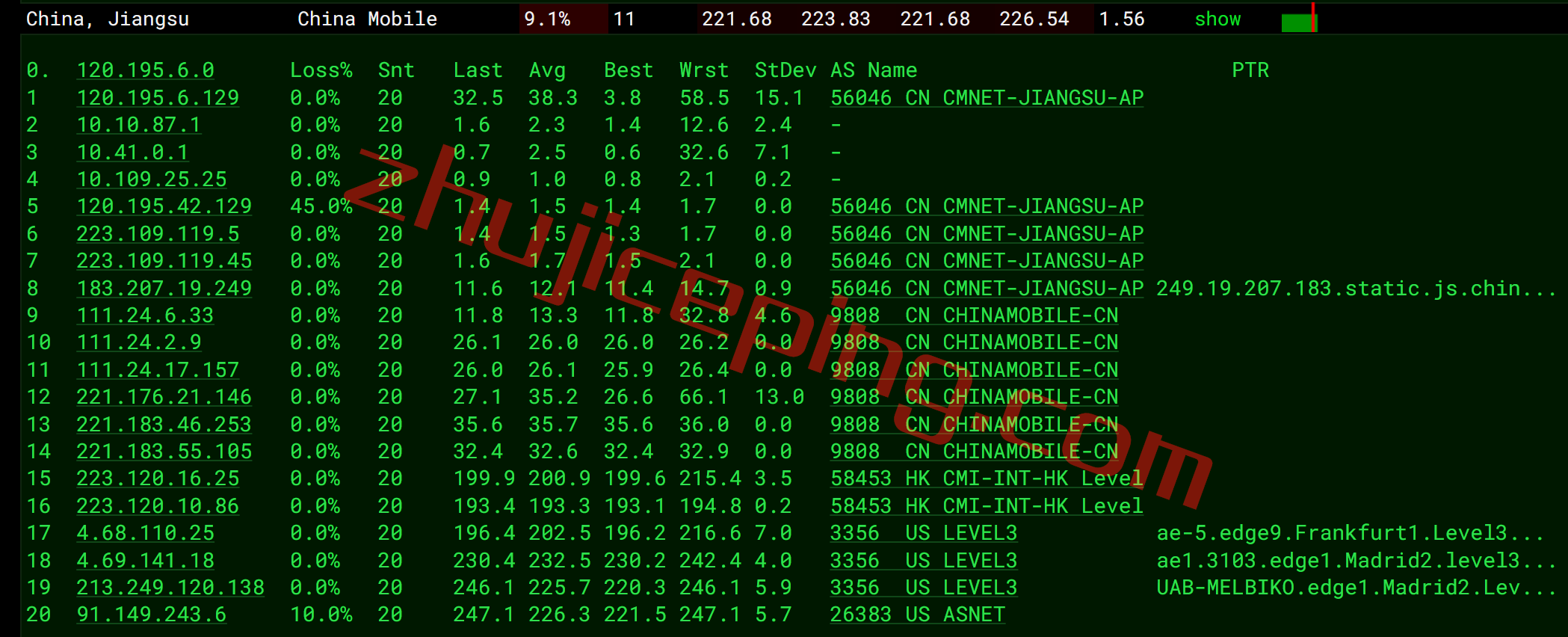 移动去程,CMI对接level3直接去德国然后去西班牙:
