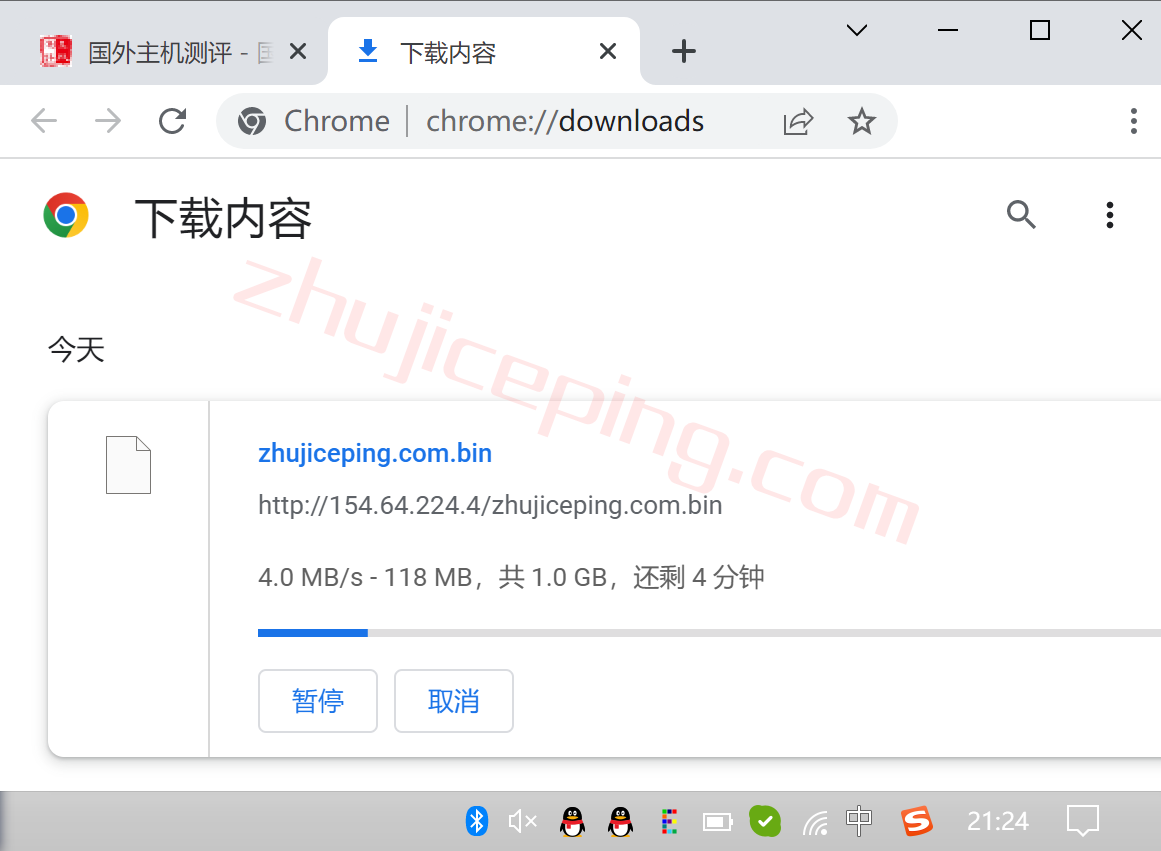 存放在测试小鸡上面的文件,广州电信家庭带宽,直接浏览器下载,看看速度: