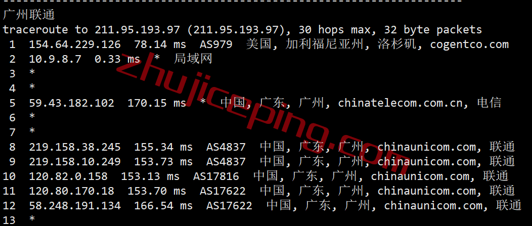 电信去程:直连电信圣何塞节点,然后走cogent去洛杉矶