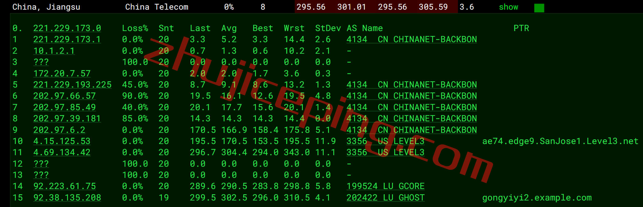 电信回程:走level3到圣何塞然后返回国内,纯国际线路