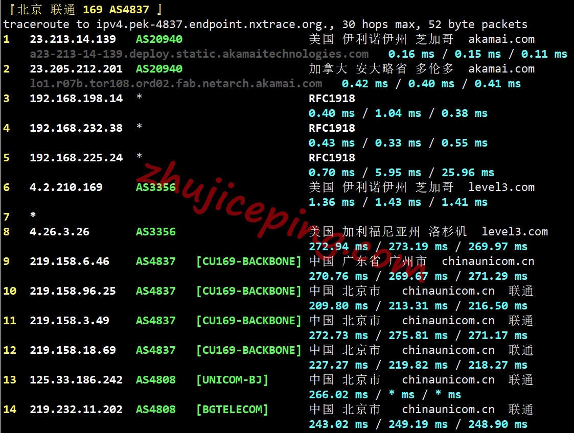电信去程:直连电信圣何塞节点,然后接NTT转akamai自己的网络去机房