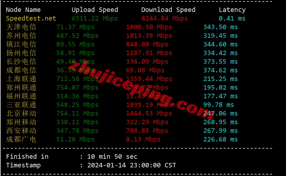 国内三网多节点测试上下行带宽,白天的大致数据如下: