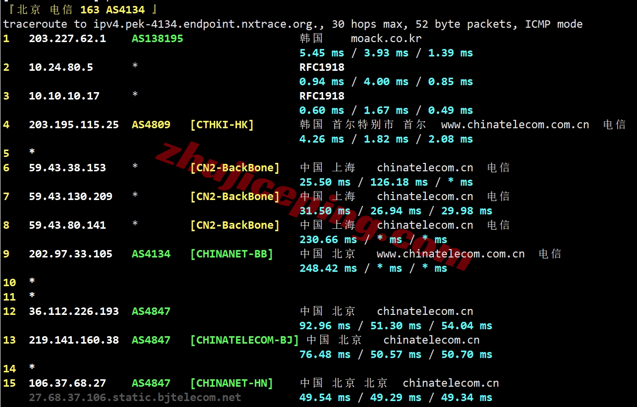 电信回程:走CN2链路回国