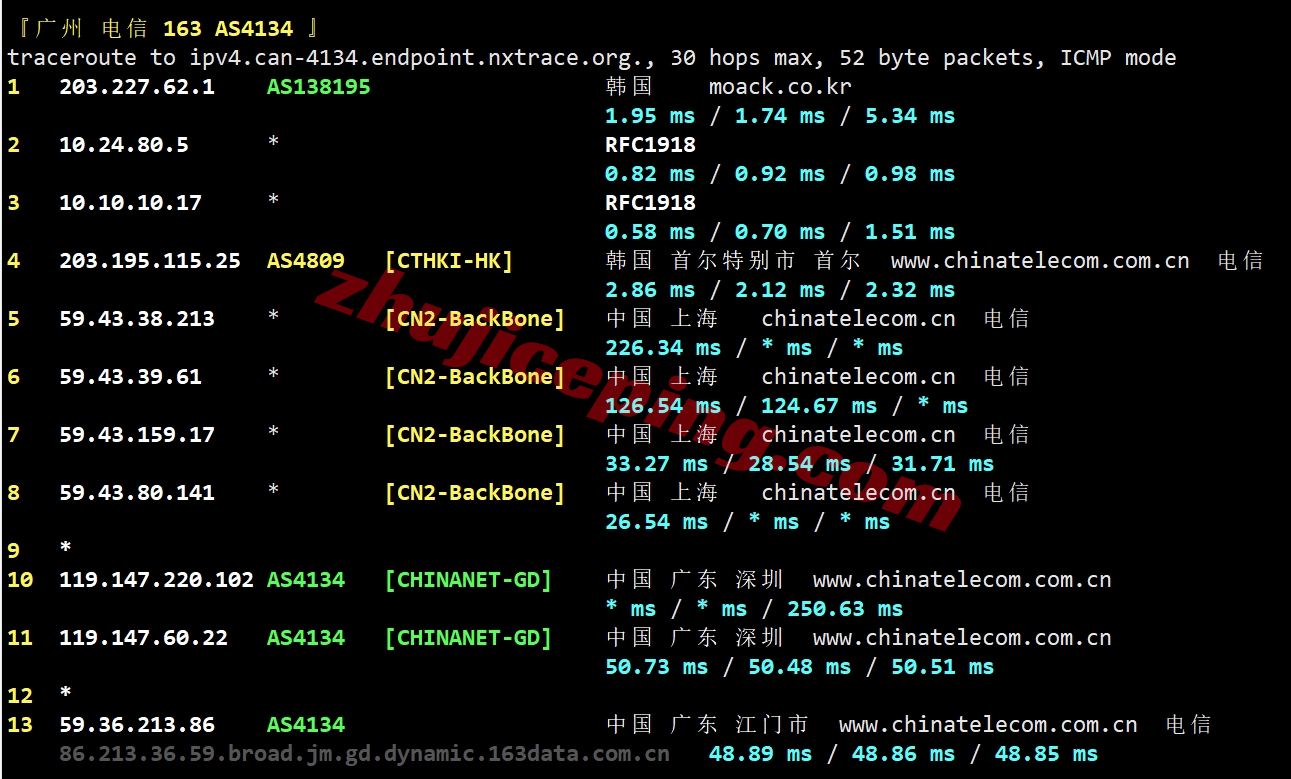 移动去程:直连移动韩国CMI节点然后去机房